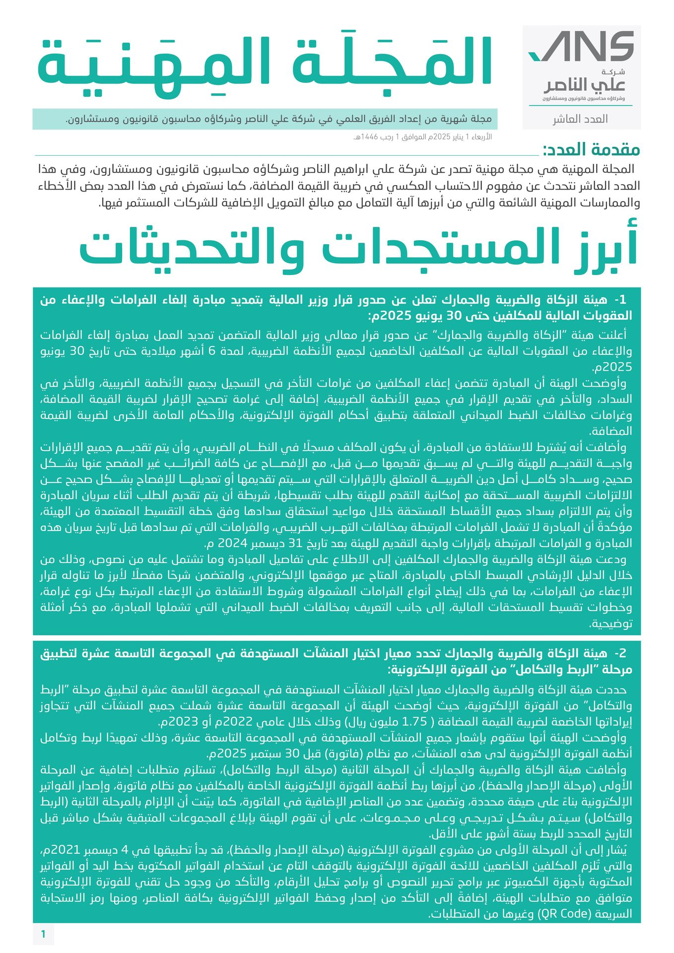 المجلة المهنية - العدد العاشر - يناير 2025م